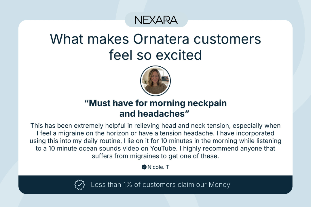 Had daily headaches for years with AS. Every morning terrible headache - spent thousands on pillows. Day 1: Used with heating pad. Day 3: Headache gone. First time something actually works. Just happy to have found something that gets rid of my morning headaches."